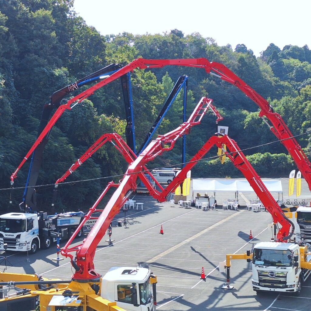 建築工事では住宅、マンション、大型商業施設、土木では橋梁、砂防堰堤、護岸擁壁など、コンパクトな機種から超高圧車、超ロングブーム車まで幅広く機種を揃え、建築高層圧送、土木長距離圧送にも装備と技術で対応、お客様の多様なニーズにもお応えできます。
